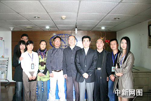 国务院侨办副主任赵阳(右起第五位)、浙江省侨办主任王晓峰、副主任邱国栋与中新社浙江分社部分员工。作者:汪恩民