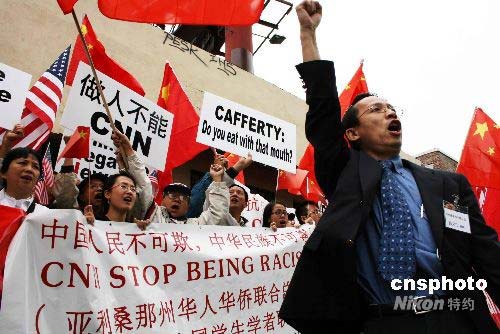 4月9日,北京奥运火炬在旧金山传递,CNN主持人卡弗蒂称“在过去五十年里中国人基本上一直是一帮暴民和匪徒”,激起华人社区愤怒。纽约居民梁淑冰联合中国公民李丽兰(音译),向CNN、主持人卡弗蒂和CNN母公司特纳广播公司提出集体诉讼,要求赔偿13亿美元,获当地一家联邦法院受理。