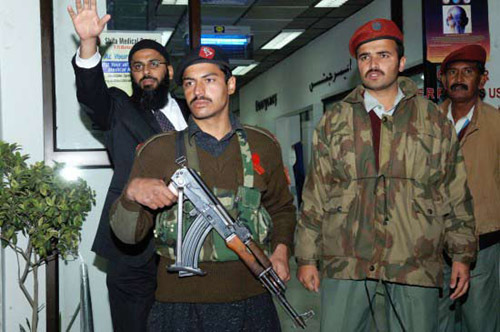 24日,在巴基斯坦首都伊斯兰堡,军警在收治受伤中国工程人员的医院急诊室外把守。新华网 李敬臣 摄