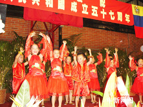 10月1日晚上,委内瑞拉委京中华会馆隆重举办“庆祝国庆”联欢晚会,中外人士共1000多人欢聚一堂。6时,醒狮起舞,锣鼓声和鞭炮声响过后,在中文学校一班小朋友合唱的雄壮国歌声中,拉开了晚会的帷幕。