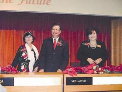 中新网12月22日电 美国蒙特利公园市市议会12月20日举行圣诞节前最后一次特别会议,华裔市议员刘达强宣誓就任蒙市市长,马丁尼兹(Sharon Martinez)宣誓就任蒙市副市长。原华裔市长赵谭美生宣布卸任。