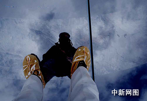 大峡谷玻璃天桥的第一步,八天后正式接待游客。