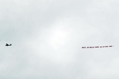 华人租用飞机拉出标语抗议达赖演讲