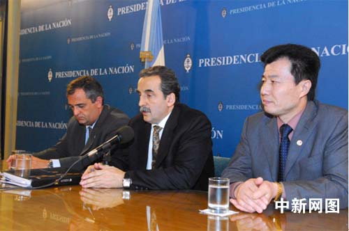 出席签字仪式的有阿根廷总统基什内尔、经济部长米塞利、内贸国务秘书莫雷诺,华人超市公会会会长陈大明等。(记者袁诚哲)