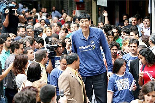 现年55岁的鲍喜顺身高2.36米,体重117公斤,在去年成功申报了吉尼斯世界纪录,成为名副其实的世界自然生长第一高人。34年前他曾是沈阳军区的一名篮球运动员,1973年他离开部队,回到了老家赤峰市。现在他住在一个高5.7米的住宅中,住宅中的睡床长达2.6米。