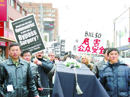 安省中医针灸考试委员会主席李嘉表示,50号法案于2005年12月7日在安省议会通过一读,法案中不少条款被认为对中医针灸作为一个平等的医疗专业充满歧视,亦无视省民的医疗卫生健康及安全,因而受到业界一致抵制,但自由党政府无视业界近一年的抗争,于今年10月19日在未修改一字的情况下令法案在省议会通过二读。