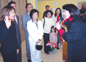 尽管并非正式的宣誓就职仪式,仍然吸引了日落区各族裔家庭和社区领袖参加。马世云父母、亲友和州众议员马克兰诺(Mark Leno)、日落区侯任市参事赵悦明以及社区人士100多人到场见证,仪式由旧金山高等法院法官郭莉莲主持。