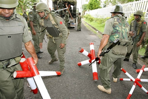 中新网12月5日电 据香港《文汇报》综合报道,南太平洋岛国斐济局势再度吃紧,当地军方于4日进驻警队军械库,解除多名警员的武装,并在首都苏瓦街头设置路障。在政变阴霾下,苏瓦市面仍然平静,有华商称多数店铺已早早歇业,以防不测。