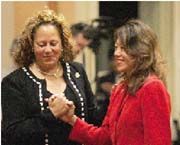 马世云当天一身红装,在众多众议员中显得非常醒目。她指出,加州面临的重大挑战,是巨额预算赤字;4年前就任旧金山市议员时,旧金山市政府面临2.5亿元赤字,经过4年的努力,终于把赤字额降低。