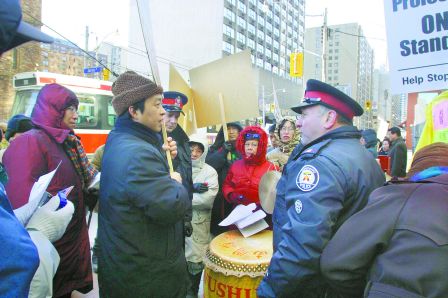 加拿大中医学会会长袁晓宁在示威现场告诉记者,鉴于室外的温度实在太低,该联盟临时通知部分已经上了年纪的老中医和患者不必前往参加这个为时两个小时的示威活动。