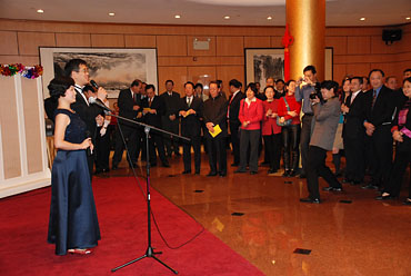 中新网2月9日电 据中国外交部网站消息:2月7日晚,中国常驻联合国代表王光亚大使夫妇在代表团驻地举行华人华侨国际职员春节招待会暨联欢晚会,联合国陈健副秘书长、中国常驻联合国副代表刘振民大使夫妇和代表团刘汉明公参出席了招待会。180多位华人华侨国际职员参加了招待会。