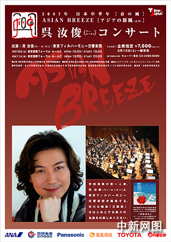 2007日本中华年“春之音”——吴汝俊音乐会,将于4月10日在东京开演。
