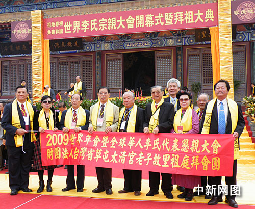 中新网鹿邑10月18日电(记者 周小云)天下李姓,根在鹿邑。18日,祖地寻根 共建和谐——世界李氏宗亲大会暨拜祖大典在河南省鹿邑县明道宫隆重举行,来自海内外1千余名李氏宗亲代表、嘉宾,以及河南相关官员出席了大会开幕式,在此共拜始祖以示对先祖的无限崇敬和缅怀之情。