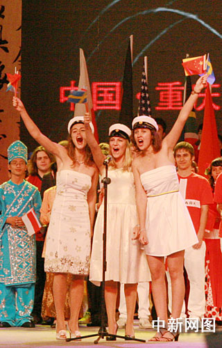 在当晚的开幕式上,选手们穿着最能够代表自己国家和民族的服装,手拿本国国旗和中国国旗分组亮相。尽管他们不同肤色来自不同国家,但在这里他们都说着同一种语言。参赛的29国中学生用流利的中国话回应着山城市民的热情。三位来自日本东京的小姑娘甚至用地道的重庆话给现场观众打招呼,而来自德国的三位中学生则用“雄起”来为自己的队伍加油......这些极具创意的亮相都赢来在场观众的热烈掌声。
