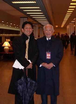 2005年,胡锦涛主席访问西班牙,中西合作在马德里举办了首届西中企业家峰会。那天下着大雨,我出了地下停车场之后冒雨走向会场。见前面有人打伞走着,仔细一看竟然是萨翁。见到他,我特别兴奋,赶快大声问候:“Hola Don Samarán”(“Don”翻译成“堂”是对有身份的人的尊称,因为兴奋,我没有喊他的全名),萨马兰奇起先愣了一下,马上就认出我来了,让我不可思议的是时隔三年,他竟然还记得我的名字,他回答我:“Ahi! como estáSeñor Marco Wang?”(嗨!马可.王先生,您都好吗?)。他用雨伞给我遮雨,而我干脆就把他的伞拿过来给他打着了。能给他打伞,我感觉很自然,不仅因为他是萨马兰奇,也是因为他那么大年纪了,尊敬老人本来就是中国人的为人标准之一。有人也许要问,这么大年龄的人独自走着,怎么没有人给他打伞呢?对于这一点我很理解,我曾见过西班牙驻北京大使独自一个人站在使馆门口浑身湿透,在风雨中打着伞等待首相车队的到来,而旁边就没有一个随从人员,我建议他让别人帮着拿伞而被他断然拒绝了,我想这可能是一种尊严,也可能是一种民主的观念。有教养的人,越是有名,越是有权有势就越是低调。