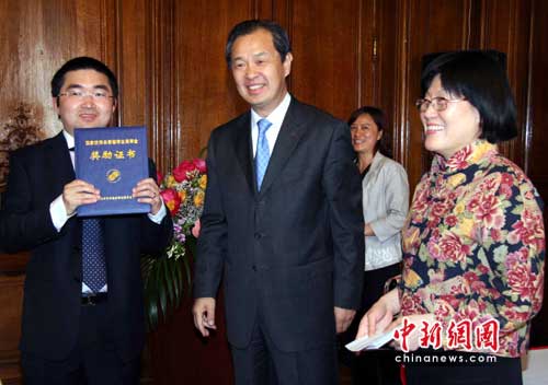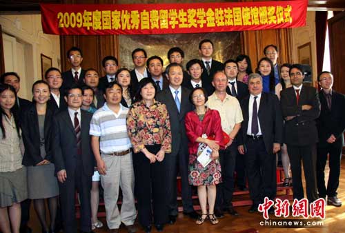 中新网巴黎6月4日电(记者 卫中)2009年度中国优秀自费留学生奖学金颁奖仪式4日下午在中国驻法国大使馆举行,20位留法学子获得这一殊荣。