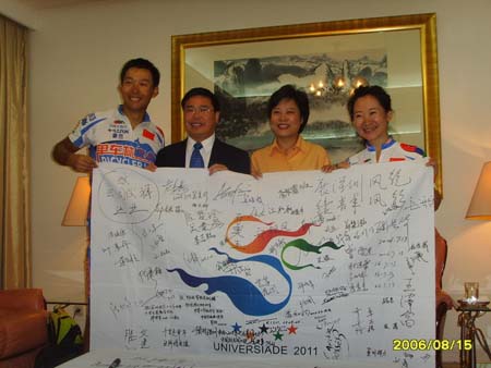 中新网8月21日电 据西班牙《欧华报》报道,深圳正在积极申办有“小奥运”之称的2011年世界大学生运动会,毕业于北京体育大学教育学院的林明伟老师、王丽女士和他的团队怀着实现首位中国人骑行七大洲的梦想,为深圳申办该次大运会,开始了2006中国人首次“自行车穿越欧洲之行”。日前该团队到达西班牙,受到中国驻西班牙大使馆的接见和高度赞扬。