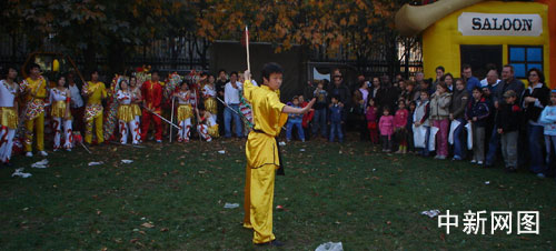 开场锣鼓敲响后,由中文学校的同学们表演的三只狮子欢快地蹦出,随后两条长龙高高得跃过观众的头顶来到场中,一下子就吸引了观众的注意力。随后一名男生在《男儿当自强》的背景音乐中表演了武术刀术和拳法,四位女生也穿着绿色的民族服装表演了中国腰鼓。这些表演让人深深体会到,来自东方的悠久文化可以与西方文明如此和谐共存。