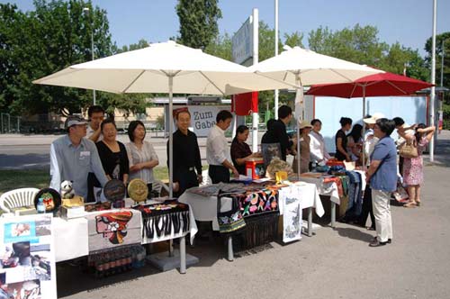 记者在现场看到,许多华侨华人都驱车感到义卖现场,很多奥地利朋友也对义卖表现了浓厚的兴趣。有一位不知名的奥地利朋友用一百欧元购买了一个标价仅为二十欧元的坤包。记者现场采访了这位朋友。她说,在得知发生于中国四川的地震灾情之后,她一直想寻求一种方式把她对于灾区人民的关心表达出来,现在有这么一个机会,她感到很开心。不但可以通过这种方式把自己的一份爱心献给灾区,同时还可以买到很多平时市场上根本看不到的具有浓郁的中国风情的物品,她认为绝对是不虚此行。