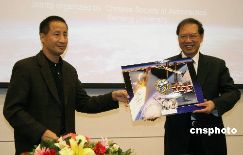 十月二十四日下午,应中国宇航学会邀请正在华访问的美国目前唯一一位在役华裔宇航员卢杰博士,作客北京航空航天大学并发表演讲。卢杰具有丰富太空工作经验,此行旨在推动和加强中美两国载人航天技术的学术交流。中新社发 孙自法 摄