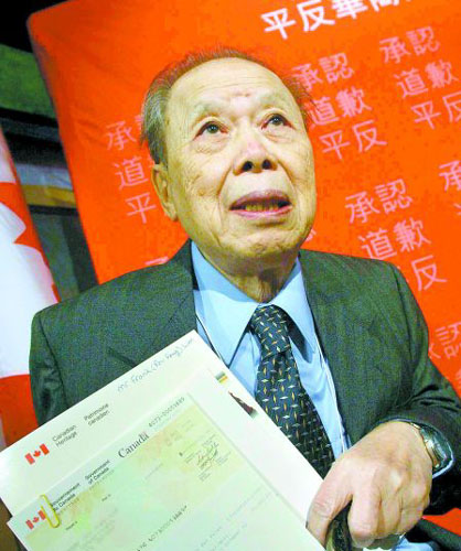 加拿大政府首付华裔“人头税”付款人象征性赔偿