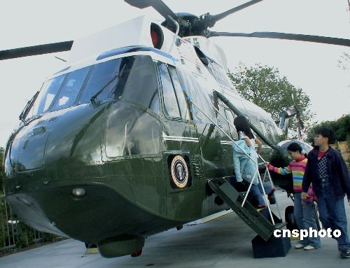 当地时间二月十九日,旅美洛杉矶华人华侨欢度今年中国传统农历新年初二适逢美国总统日假期相连,华裔学童们到尼克松总统图书纪念馆参观四任美国总统乘坐过的专用直升飞机。中新社发 贾国荣 摄