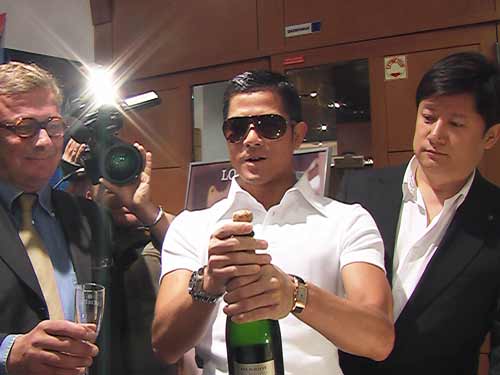 中新网6月13日电 据法国《欧洲时报》报道,华人歌坛巨星郭富城日前亲临由旅法华商参与经营的“巴黎形象”(PARIS LOOK)免税店,为产品代言。为了一睹天王的风采,早在郭富城抵达前一小时,“巴黎形象”门前已经聚集了各界媒体记者和旅法华人歌迷翘首以待。随后郭富城与“巴黎形象”总裁以及中国市场总经理武音先生一起主持代言仪式,并为歌迷签名合影。