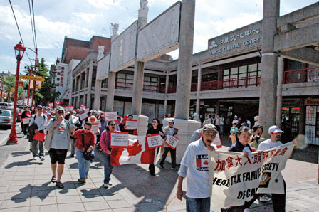 中新网7月3日电 据加拿大《明报》报道,加拿大“人头税”家属会7月1日趁着加拿大国庆节,在温哥华华埠发起示威游行,要求加拿大联邦政府进一步赔偿“人头税”后裔,有逾百名市民参加。