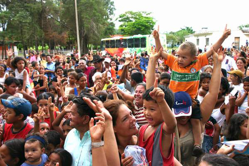 礼物赠送仪式于14日下午在坎波格兰特市郊贫民住宅区的一个操场上举行。将近3千名贫困儿童得知分发礼物的消息,早早就在操场上翘首等待。一些幼小的孩子,是由父母、祖父母抱着来,或坐在婴儿车里来。当孙荣茂总领事夫妇、吴耀宙会长,以及身穿圣诞老人服装的市长夫人安东尼耶塔和市政府的工作人员乘车到达贫民区时,受到了孩子们的热烈欢呼。