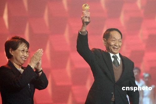 3月29日晚,“世界因你而美丽--2007影响世界华人盛典”颁奖典礼,在北京大学百周年纪念讲堂举行。在科学研究、公共事务、体育竞技、文化艺术等领域,荣获“2007影响世界华人大奖”的11位杰出华人揭晓。“杂交水稻之父”袁隆平荣膺“2007影响世界华人终身成就奖”,全国人大常委会副委员长乌云其木格为其颁奖。中新社发 廖文静 摄
