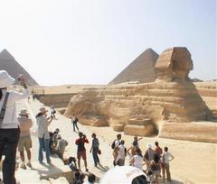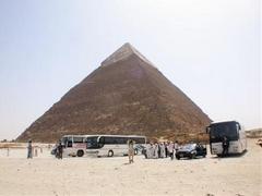 从开罗市中心前往基萨,须跨越尼罗河往西南行,基萨市区虽较老旧,不过由于是金字塔重要景点必经之处,仍相当热闹,这里有中国餐厅,不少华人旅行团,多在这里用中餐后,再前往金字塔区。