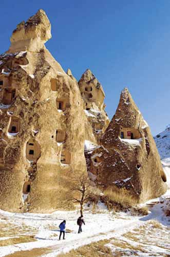 奇石林的奇异地形多变,早在公元前8000年已有人类居住,像我们这次参观位于Uchisar区内的“白鸽屋”(Pigeon Houses)便是典型的示范单位。Uchisar区是奇石林中最大的白鸽屋群,大多白鸽屋保养良好,平均高度有20多米。