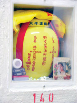 中新网1月16日电 据马来西亚《光华日报》报道,1月14日是马来西亚华裔美女朱玉叶惨遭奸杀一周年忌日,家属也特办追悼会希望能够结合公众的力量,让死者含冤得雪,但15日却发生死者骨灰格被人破坏事件,伴藏在内的其中3张音碟下落不明!