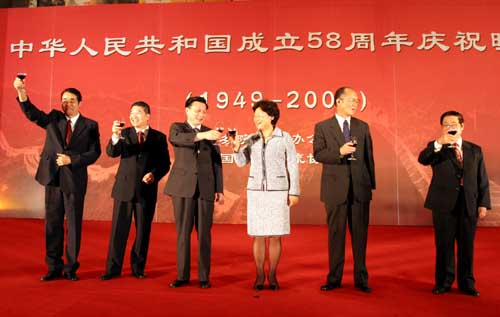 中新社北京九月二十九日电(记者 曾嘉)国务院侨务办公室、中国海外交流协会二十九日在此间举行国庆招待晚宴,欢迎专程来北京参加新中国成立五十八周年庆祝活动的七百余位海外侨胞和港澳台同胞。