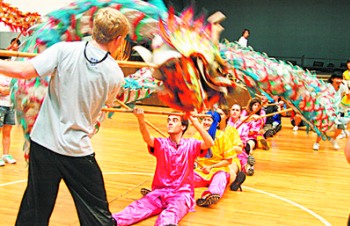 锣鼓声中,湖南涉外经济学院舞龙舞狮队千变万化的动作,让美国学生感到震撼,也不忘尝试一番中国龙的韵味。而南棍和太极等中国功夫更让美国学生兴致高涨。期间,美国学生摆弄起中国的笔墨纸砚,还真是有模有样。