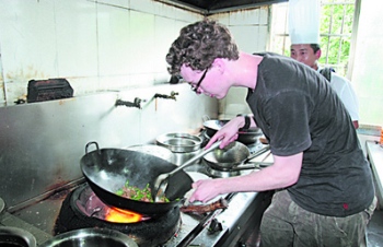 在长沙一家专卖丝绸和棉布服装的店铺里,一个金发碧眼的美国小伙用生涩的汉语跟店老板“杀价”,最终花不到100元人民币买下了一件典雅的黑底起花的旗袍。中国学生感叹:“还是老外有魅力啊!”日前,12位获得2010年美国总统奖的优秀中学生与湖南涉外经济学院的学生结成伙伴举行交流活动,在4天的时间里,博大精深的湖湘文化深深地感染着这些来自大洋彼岸的年轻人。