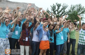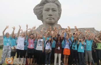 12日下午,54名来自世界各地的第九届汉语桥世界大学生中文比赛的选手来到长沙著名的景点橘子洲,为第九届汉语桥比赛拍摄宣传片。