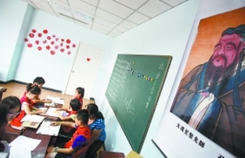 穿着中国民族特色的红马甲,孩子们跟着老师读《弟子规》,Jessica有点跟不上,她时不时看看记者。班上的唐老师也表示,由于这些小海归的中文表达还不是很流利,所以她们有点跟不上,“我们就是给这些孩子们创造一个氛围,让她们感受一个气氛,她们能够接受多少,我们并不强求,不过我们还是真诚希望这些孩子们不要忘记中国文化,毕竟他们是炎黄子孙。”唐老师介绍,为了让这些小海归们的中国文化训练有延续性,她们还给孩子们留了邮箱,并发了光盘,“有问题随时来咨询我们”。