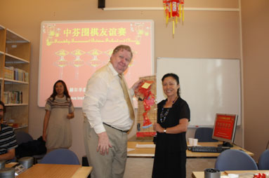 比赛共决出6位优胜者,由孔子学院中方院长李远征为获奖选手颁奖——典雅的中国仕女竹挂帘和印有孔子学院字样的购物兜。在颁奖仪式上,李远征盛赞此次围棋比赛对促进中芬友谊的意义,并希望芬兰人民通过孔子学院的活动和教学更多了解中国。