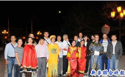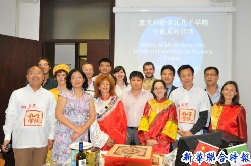 中新网9月25日电 据意大利《新华联合时报》消息,9月22日,意大利帕多瓦孔子学院举行了系列活动喜迎中秋。威尼斯华人华侨总会会长林宗岳等侨界知名人士以及孔子学院师生共30余人与会。此次活动分为3个部分,包括品尝月饼和中国美酒,民族服装街道行进展示,歌曲及武术表演等。