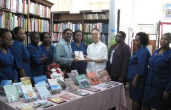 中新网10月27日电 据中国外交部网站消息,2010年10月26日,中国驻圭亚那大使于文哲代表中国大使馆向圭亚那国家图书馆捐赠了一批介绍中国的图书和DVD,圭国家图书馆主席帕索德和该馆工作人员、青年学生和媒体记者等出席捐赠仪式。