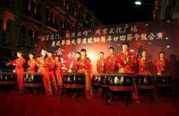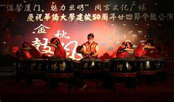 中新网11月3日电 据华侨大学新闻网消息,为进一步融入并丰富厦门文化生活,提升华侨大学在厦门市民心中的知名度和美誉度,华侨大学学生处以庆祝建校50周年为契机,积极整合当地社会资源,于10月29日晚在厦门中心商业区中山路步行街隆重举办“金秋鼓风——庆祝华侨大学建校 50 周年24节令鼓公演”。