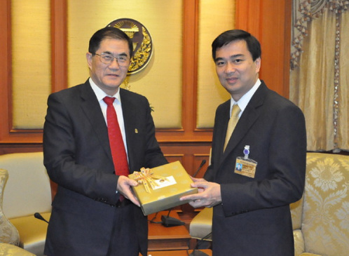 阿披实在泰国上议院亲切接见华侨大学华文教育考察团一行。阿披实称,只有文化教育往来才能真正加深两国人民的友谊,希望华侨大学在泰中两国教育文化合作交流上发挥更大作用。阿披实还代表泰国向中国近年来成功举办各种大型盛会表示祝贺。