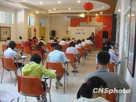 7月25日,泰国孔敬大学孔子学院举办今年的第一次HSK基础级和初中等级两个级别的汉语水平考试。据该孔子学院院长黄晓明介绍,这些年,随着孔敬大学孔子学院汉语教学和中国文化活动的进一步开展,当地学习汉语的人数激增,参加HSK考试的人数也在逐次增加,考试的级别也在提高。原来孔敬大学孔子学院只开设HSK基础级考试,应考生的要求,现在已经开设基础级和初中等级,而且这次参加初中等级考试的考生数量也比参加基础级的考生数量多。(中新社/顾时宏 摄)