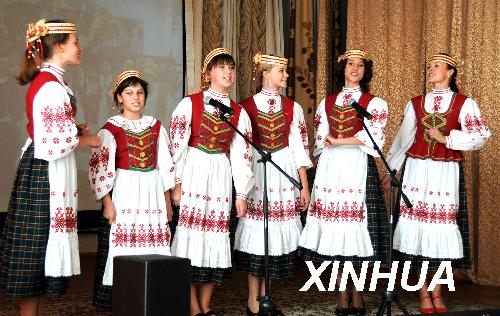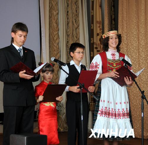 9月16日,白俄罗斯首都明斯克第23文科学校学习汉语的学生举行兼具中国和白俄罗斯民族风格的文艺演出,向即将到来的中国国庆节献上祝福。(邱夏 摄)
