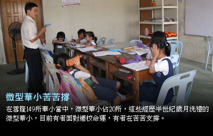在这些微型华小当中,除了大马教育部曾于去年1月底宣布会迁校的4所华小之外,其余16所华小的命运,教育部都没有做出任何指示。有的学校也不愿迁校,希望能继续在现有地区继续扮演提供华文教育的角色。