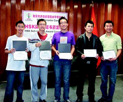 多伦多地区这次获得奖学金的考生共有七位,他们于2008年参加HSK考试成绩优异而获奖学金,并分别于2009年暑期前往北京语言大学、山东师范大学、北京语言文化大学、上海大学、华东师范大学、南京师范大学及黑龙江大学,与来自五大洲的汉语学习者和爱好者一同学习汉语和了解中国文化,并到中国一些名胜古迹参观旅游。