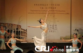 “2009年欧洲孔子学院文艺巡演罗马专场演出”18日晚在罗马皮科洛·埃利塞奥剧院举行。对外经济贸易大学学生艺术团用丰富的艺术手法展现了中国博大精深的传统文化精神,精彩的演出获得中意观众的热烈欢迎和好评。
