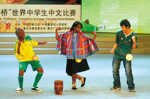 “扁担长,板凳宽,扁担想绑在板凳上……”一出场,瑞典选手就来了段绕口令,博得观众的阵阵掌声。德国代表队的朗诵《蜀道难》,朝鲜选手演唱的《卖花姑娘》等都显示了选手们对中国文化的浓厚兴趣和水平。