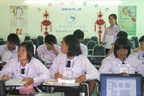 中新网10月22日电 据国家汉办网站消息,10月21日,泰国清迈大学孔子学院第一届“长城汉语”夏令营成功闭幕。夏令营以特色教材“长城汉语”为主题,50多名来自泰国南部巴蜀的学生,在老师的带领下围绕课文展开情景对话,并模仿动画内容自编小品,在一种轻松和有趣的氛围中锻炼汉语交际能力。
